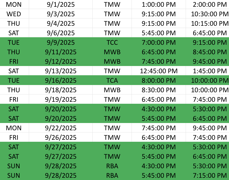 SEPTEMBER SCHEDULE