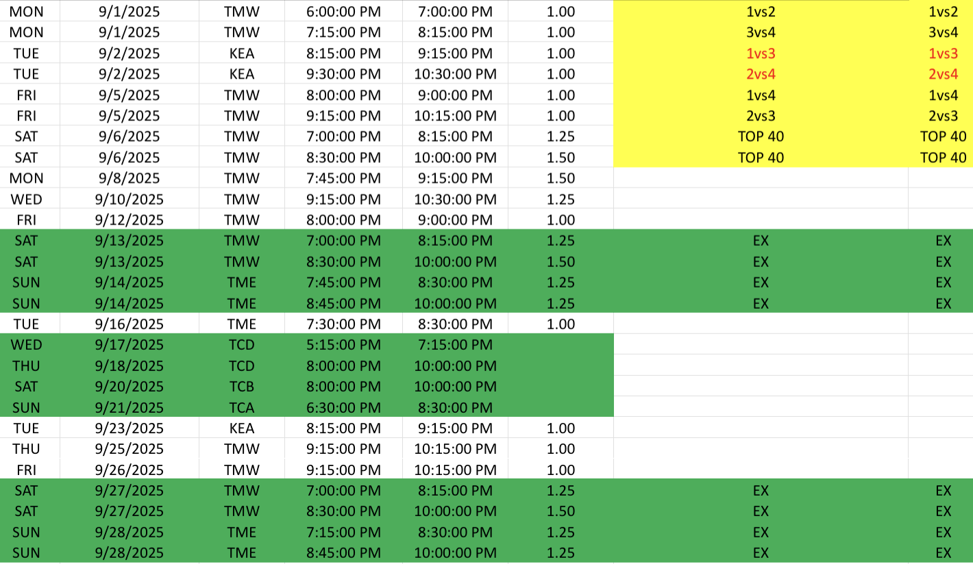 SEPTEMBER SCHEDULE